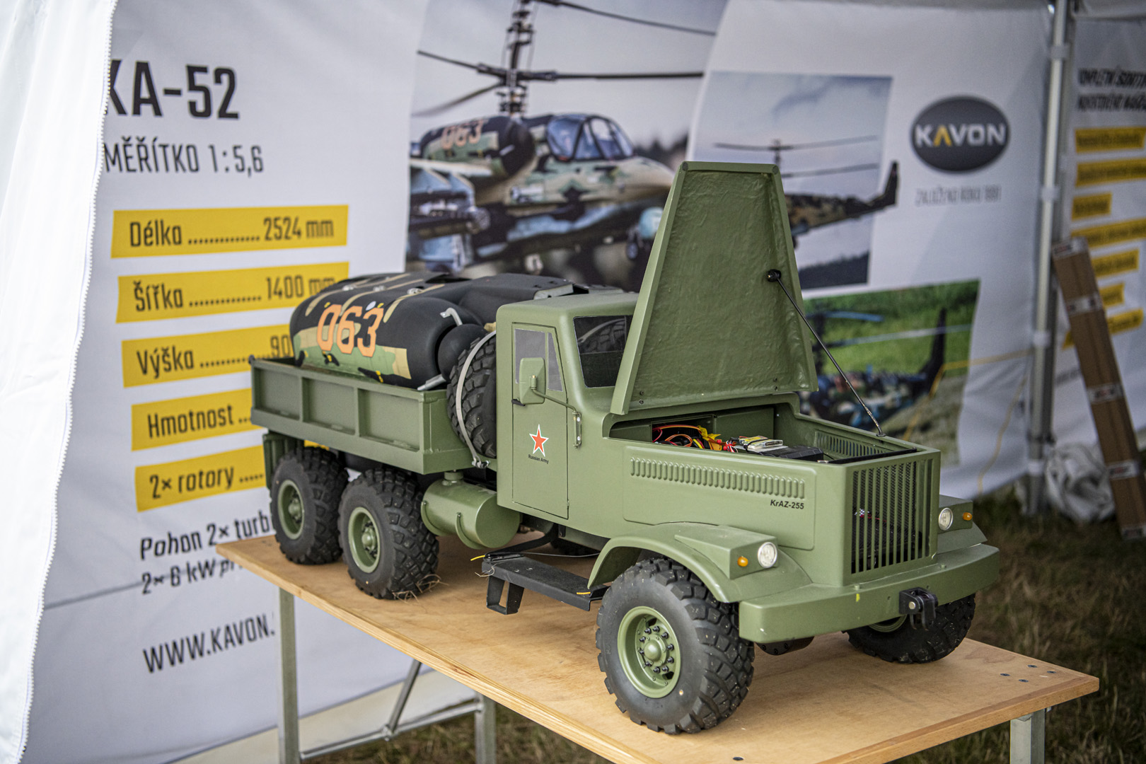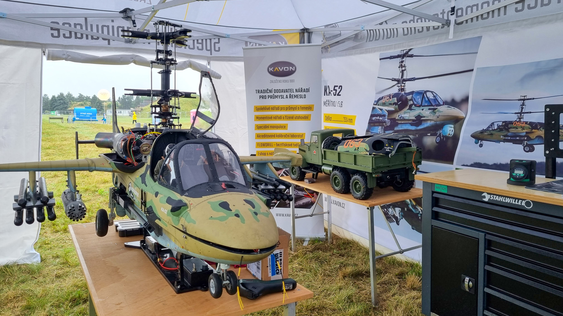 Naše firma KAVON CZ s.r.o. se zúčastnila oblíbené letecké show v Hradci Králové, kde jsme divákům měli možnost představit naše konstruktérské dovednosti v podobě 2,5 m dlouhé a 25 kg těžké bojové helikoptéry Kamov KA-52.