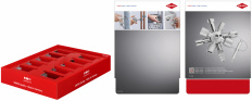 Stojan z vysoce kvalitní kartonáže s potiskem ve vysokém lesku. Malé rozměry, nepatrné nároky na prostor na prodejním pultu.