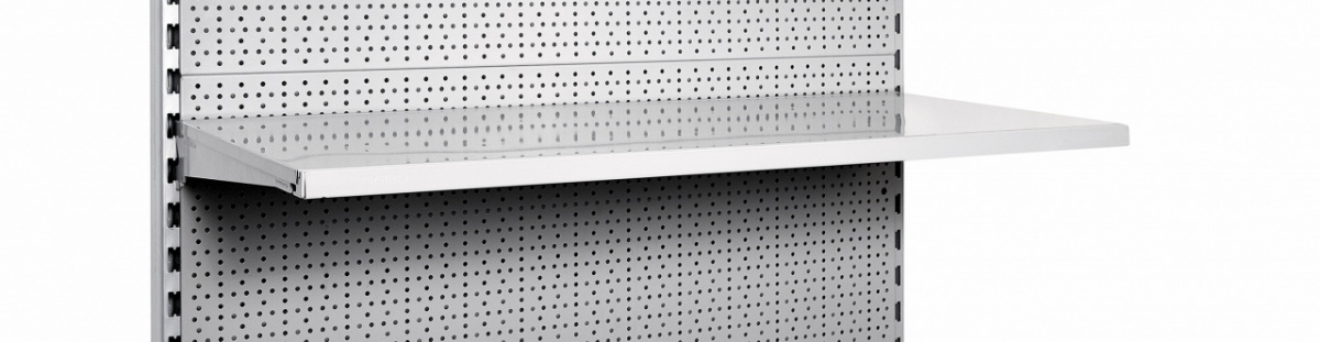 Pro připevnění na stěny s děrovanými deskami. Se 2 zavěšeními na děrovanou stěnu. Rozměry (š x v x h): 300 x 200 x 40 mm.