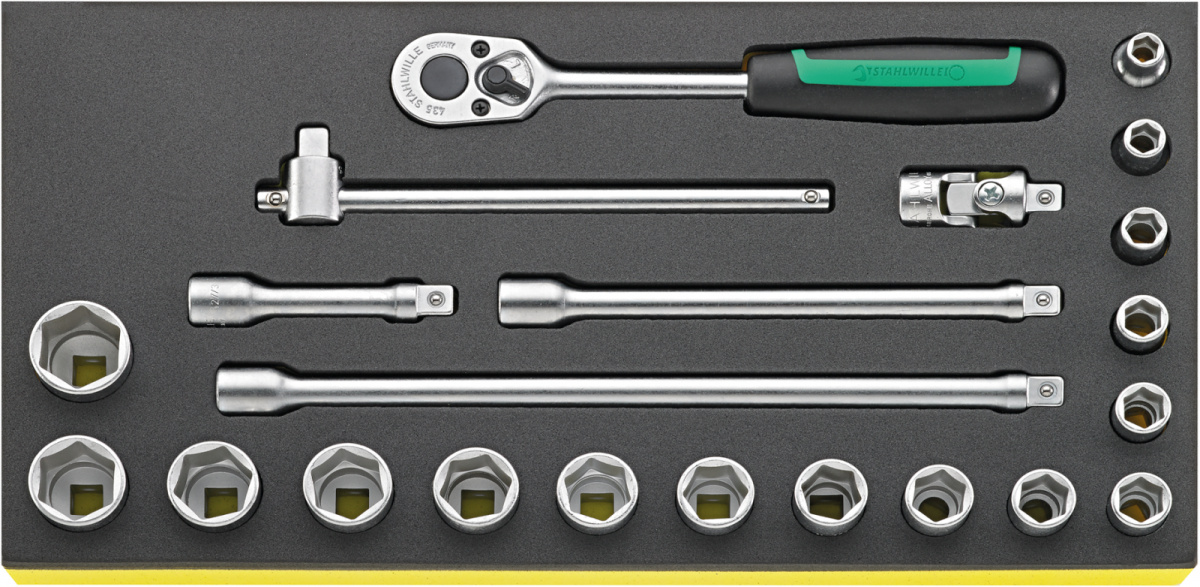175 x 350 x 45 mm, 22-dílná -------------------------------------------------------------------------------------------------------------------- Č. 456 3/8" [a rozměr klíče 7; 8; 9; 10; 11; 12; 13; 14; 15; 16; 17; 18; 19; 20; 21; 22 mm Č. 425 3/8" [D 165 mm Č. 427/3 3/8" [D [a 76 mm Č. 427/6 3/8" [D [a 160 mm Č. 427/10 3/8" [D [a 240 mm Č. 428 3/8" [D [a 46 mm Č. 435 3/8" [D --------------------------------------------------------------------------------------------------------------------
