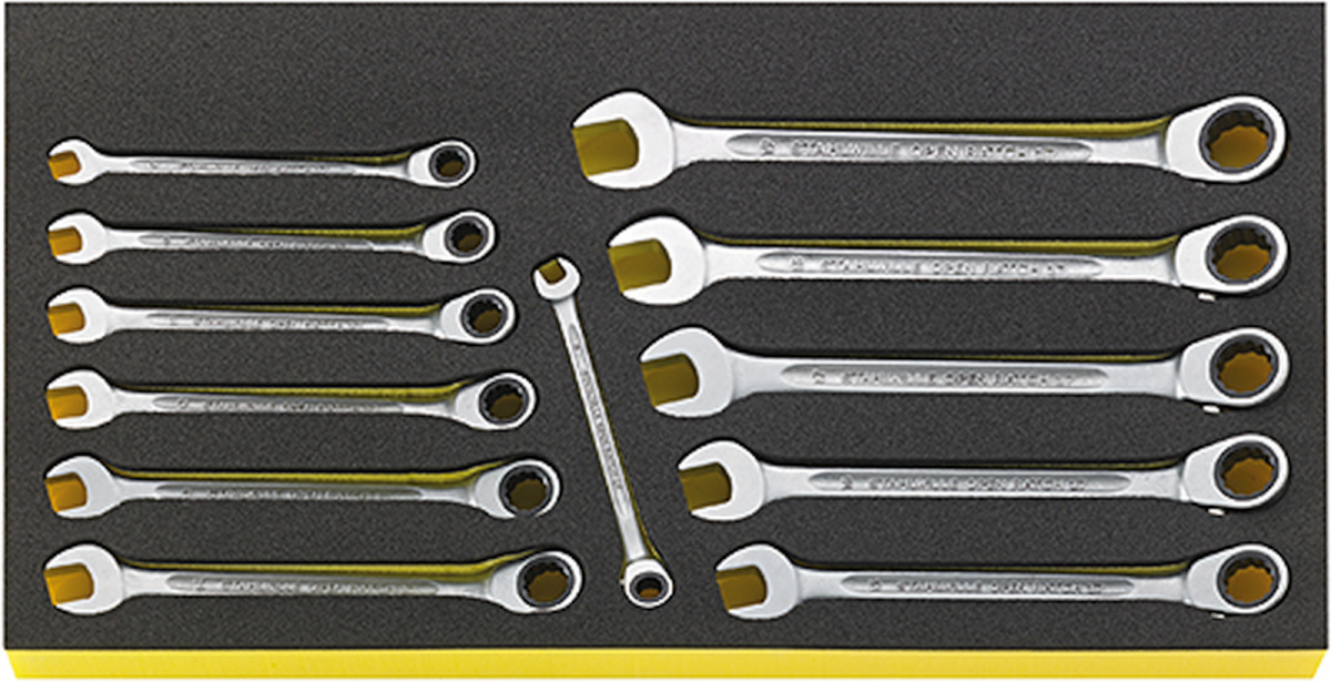 Vloky TCS pro vozík na nářadí č. 13217 pro zásuvky vozíku na nářadí č. 13217, 460 x 250 x 30 mm, 12-dílná ----------------------------------------------------------- Nr. 17 SW 8; 9; 10; 11; 12; 13; 14; 15; 16; 17; 18; 19 mm -----------------------------------------------------------