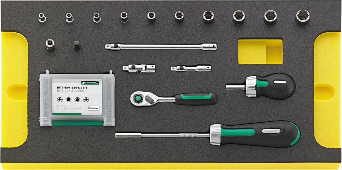 Vloky TCS pro vozík na nářadí č. 13217 pro vyjímatelnou odkládací přihrádku vozíku na nářadí č. 13217, nelze kombinovat s průhledným krytem 13217 TA, 460 x 250 x 30 mm, 39-dílná ------------------------------------------------------------------------------------------ Č. 40 1/4" [a rozměr klíče 4; 4,5; 5; 6; 7; 8; 10; 11; 12; 13 mm Č. 405QR/2 1/4" [D [a 54 mm Č. 405QR/6 1/4" [D [a 150 mm Č. 407QR 1/4" [D [a 38 mm Č. 412 1/4" [b [a Č. 415QR N 1/4" [D Č. 1204/21-1 4 x [k; 4 x [l; 9 x [n; 3 x [b Č. 3115/1 1/4" [D [E Č. 4008 velikost 1; 2 ------------------------------------------------------------------------------------------