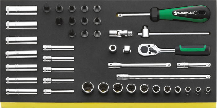 TCS 40/35/9 175 x 350 x 40 mm, 44-dílná --------------------------------------------------------------------------------------------------- Č. 40 1/4" [a rozměr klíče 5; 5,5; 6; 7; 8; 9; 10; 11; 12; 13; 14 mm Č. 40L 1/4" [a rozměr klíče 4; 4,5; 5; 5,5; 6; 7; 8; 9; 10; 11; 12; 13 mm Č. 41K 1/4" [a, [r 0,6 x 3,5; 1,0 x 5,5; 1,2 x 8 mm Č. 44K 1/4" [a, [E 3; 4; 5; 6; 8 mm Č. 44P 1/4" [a, [k velikost 1; 2; 3; 4 mm Č. 400 1/4" [D 150 mm Č. 404 1/4" [D 116 mm Č. 405/2 1/4" [D [a 54 mm Č. 405/4 1/4" [D [a 100 mm Č. 405/6 1/4" [D [a 150 mm Č. 407 1/4" [D [a 38 mm Č. 412 1/4" [b [a Č. 415 1/4" [D Č. 409 3/8" [D 1/4" [a ---------------------------------------------------------------------------------------------------