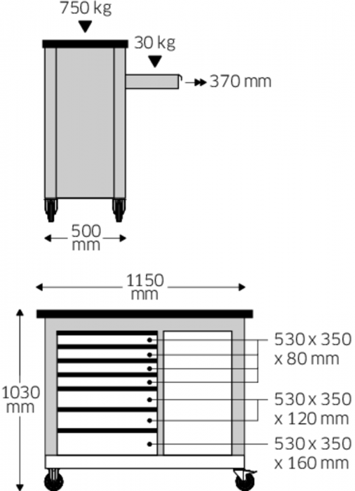 •Pohyblivý pracovní stůl, 7 zásuvek, 1 skříňka