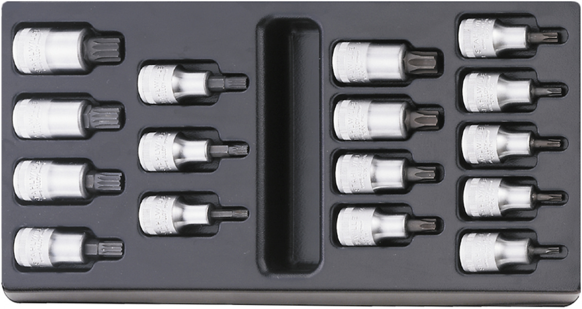 ES 54X/54TX 175 x 350 x 38 mm, 16-dílná ------------------------------------------------------------------------------- Č. 54X 1/2" [a velikost M5; M6; M8; M10; M12; M14; M16 Č. 54TX 1/2" [a velikost T20; T25; T27; T30; T40; T45; T50; T55; T60 -------------------------------------------------------------------------------