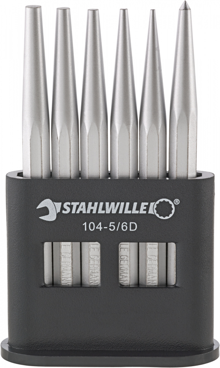 Sada dírkovačů a důlčíků 6-dílná sada. Obsah: po 1 ks č. 104/120 x 2; 120 x 3; 120 x 4; 120 x 5; 120 x 6 mm č. 105/120 x 10 mm v pouzdře z umělé hmoty.