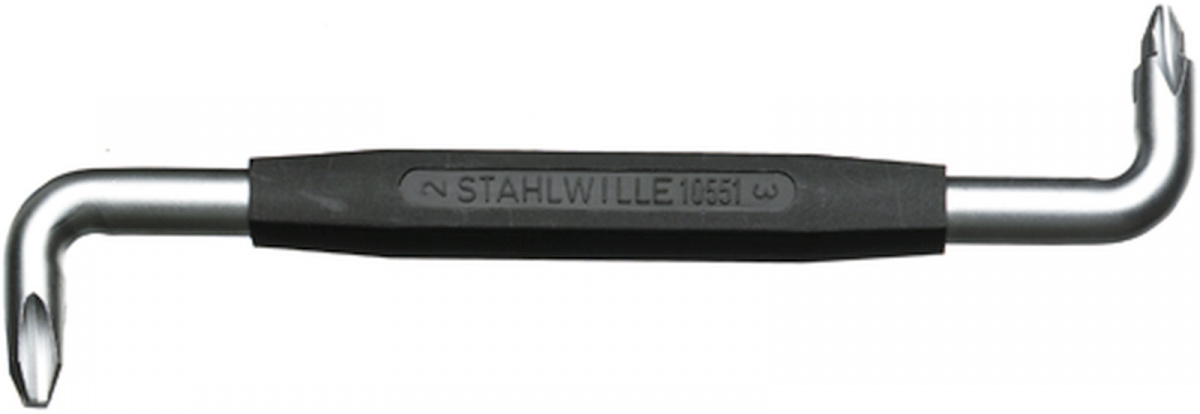 Úhlový šroubovák, pravoúhlý DIN 5208, pro šrouby s křížovým zářezem Phillips-Recess®, rukojeť z nárazuvzdorné, černé umělé hmoty, chrom-vanad, pochromovaný.