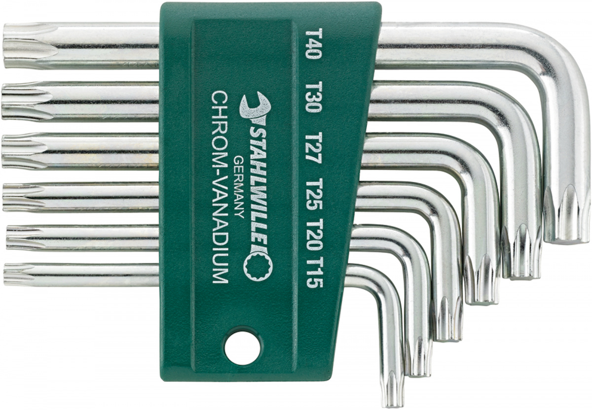 Sada úhlových imbusových roubováků pro rouby s vnitřním TORX®, v pouzdře, chrom-vanad, pochromovaná.