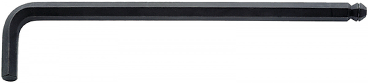 Úhlový imbusový šroubovák s kuličkovým koncem pro šrouby s vnitřním šestihranem, úhel natočení 25°na obě strany, s kuličkou a držákem na delším konci, pro rychlou a bezpečnou práci i v úzkých těžce přístupných místech, nasunuté šrouby jsou dostatečně uchycené, chrom-vanad, černěné.