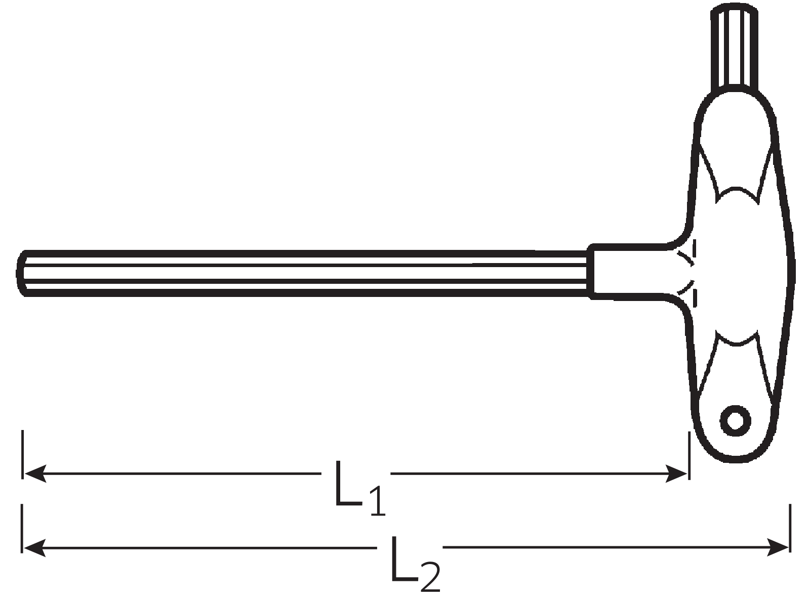Šroubovák s dvojslokovou rukojetí, na šrouby s vnitřním šestihranem, se dvěma hroty, legovaná ocel chrom-vanad, matně pochromovaná, černé hroty.