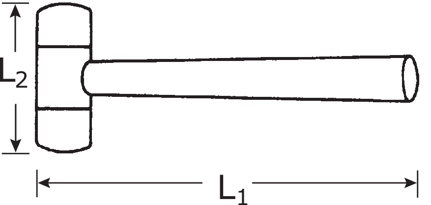 Plastové kladivo s vyměnitelnou hlavou z nárazuvzdorného celulos-acetátu a s násadou z jasanového dřeva.