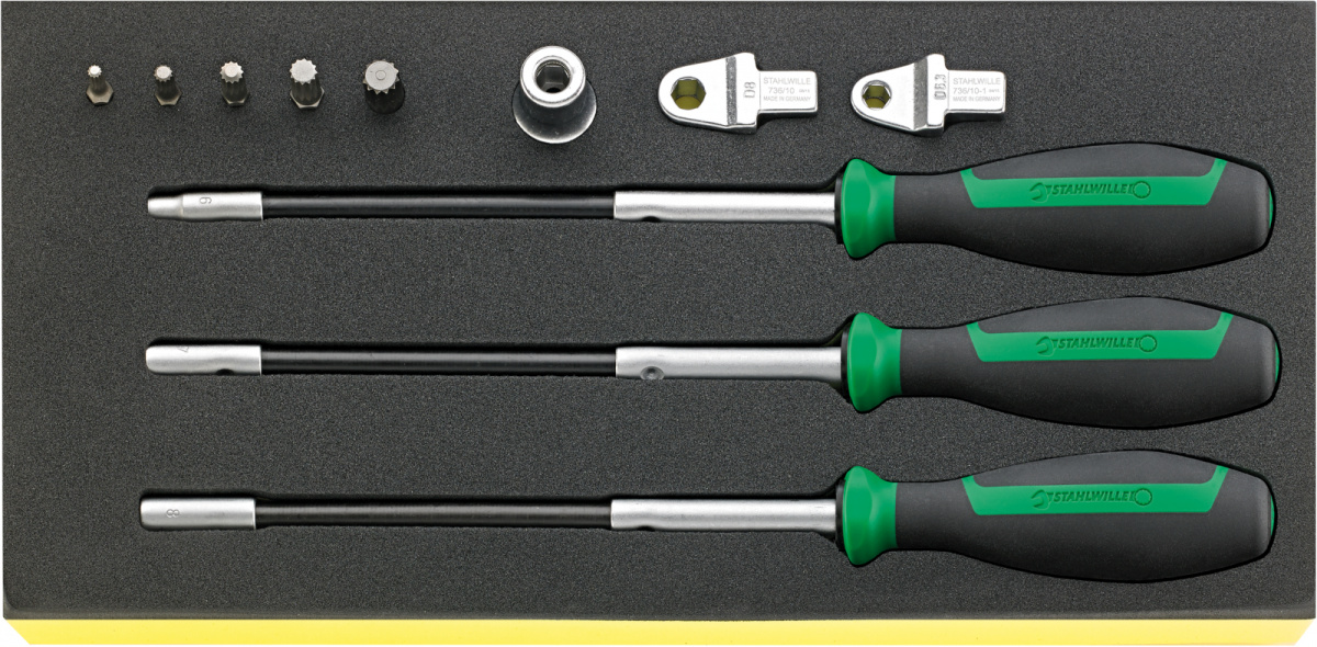 Doplňková sada pro VW 66 ks nářadí v TSC vlokách,vloky 2x1/3 a 1x2/3 do 2 ks zásuvek (č. 91P ke 1 zásuvka). -------------------------------------------------------------------------------------------------------------------------------- Č. 10 rozměr klíče 6 x 7; 8 x 9; 10 x 11; 12 x 13; 14 x 15; 16 x 17; 18 x 21; 19 x 22; 24 x 27; 30 x 32 mm Č. 40DL 1/4" [a rozměr klíče 8 mm Č. 46 3/8" [a rozměr klíče 12 mm Č. 51 1/2" [a rozměr klíče 10; 13; 14; 15; 16; 17; 18; 19 mm Č. 54TX 1/2" [a velikost T30; T40; T45; T50; T55 Č. 512 1/2" [D Č. 513 3/8" [D 1/2" [a Č. 1162 0,6 x 3,5 mm Č. 1164 0,8 x 4,0 mm Č. 1166 1,0 x 5,5 mm Č. 1166/1 1,2 x 6,5 mm Č. 1168 1,6 x 8,0 mm Č. 1299 2 mm Č. 1221 velikost 1 Č. 1222 velikost 2 Č. 1223 velikost 3 Č. PZ1221 velikost 1 Č. PZ1222 velikost 2 Č. PZ1223 velikost 3 Č. 1410 velikost T6 Č. 1411 velikost T7 Č. 1412 velikost T8 Č. 1413 velikost T9 Č. 1414 velikost T10 Č. 1415 velikost T15 Č. 1416 velikost T20 Č. 1417 velikost T25 Č. 1418 velikost T27 Č. 1419 velikost T30 Č. 1420 velikost T40 Č. 1421 velikost T45 Č. 1435 velikost T55 Č. 1300 3 mm Č. 1301 4 mm Č. 1302 5 mm Č. 1303 6 mm Č. 1304 8 mm Č. 415B 1/4" [b Č. 12507-2K rozměr klíče 8; 10; 13 mm Č. 65 01 5 180 Č. 65 29 5 145 Č. 65 30 5 200 Č. 66 00 5 145 Č. 66 02 5 200 --------------------------------------------------------------------------------------------------------------------------------
