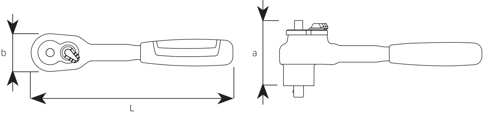 Jemnozubá rychlospínací ráčňa (QuickRelease), 3/8" přepínatelná, 80 zubů, s dvojitou plastovou izolací pro práce pod napětím, dvoukomponentní rukoje pro práci na těce přístupných místech, pracovný úhel od 4,5°.