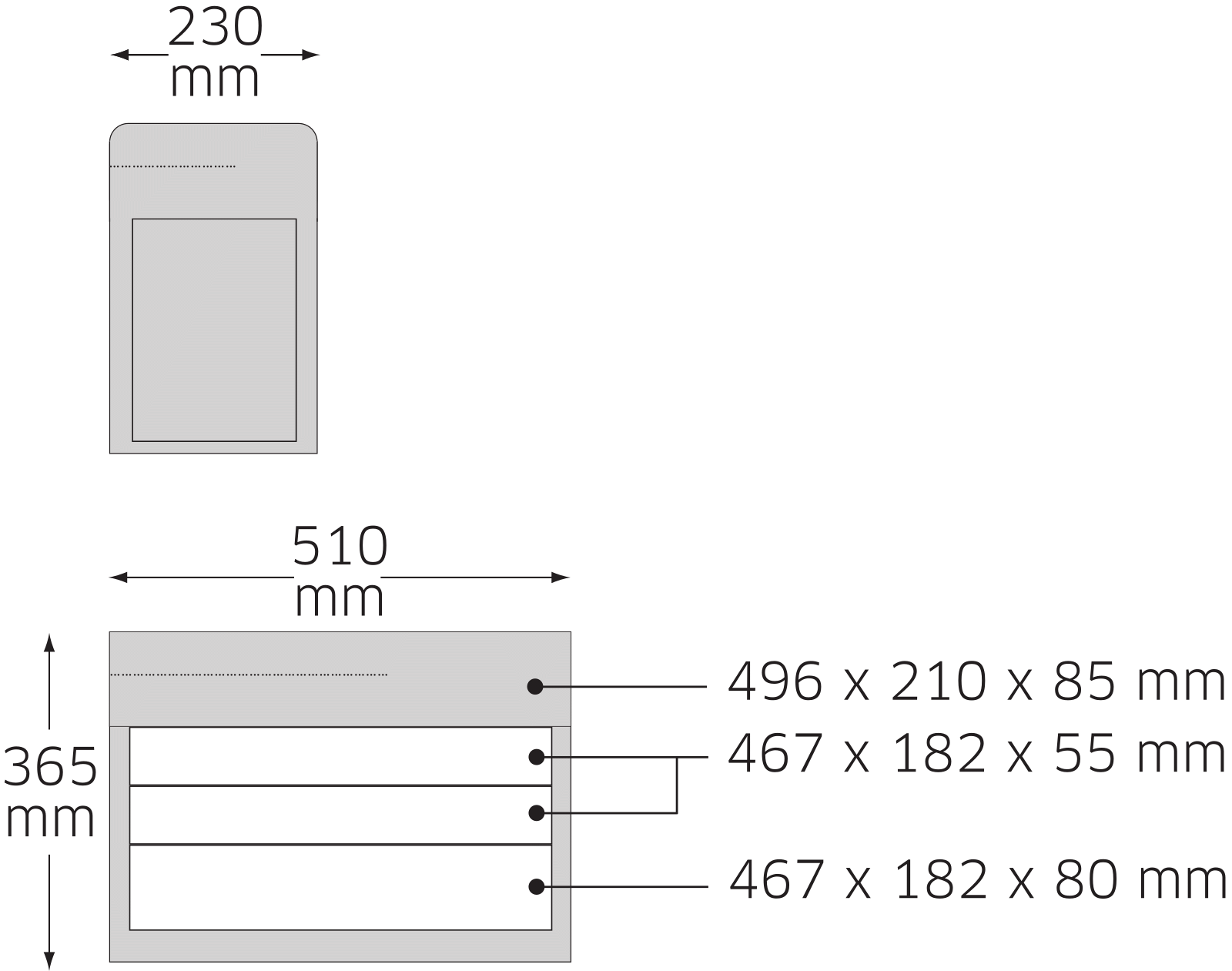 Přenosný box na nářadí se 3 zásuvkami, jednou přihrádkou pod víkem, bezpečnostní zámek a umělou hmotou oplátěným dradlem na víku. iroké, odpruené, umělou hmotou oplátěné postranní dradla. Vysocehodnotné, stabilní vedení s plynulým výsuvem. Perforovaná vrchní část se můe individuálně namontovat pomocí pruinových pantů č. 8050 .