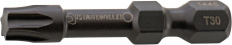 Torzní nástrčné BITY do šroubováku pro vnitřní šrouby typu TORX® vyvinuty speciálně pro profesionální akumulátorové šroubováky dělí životnost díky individuálnímu torznímu tvaru, zvláště elastický materiál a speciální zušlechtění kontrolovaná manipulace se strojem v blízkosti šroubů díky obzvlátě kompaktní konstrukci.