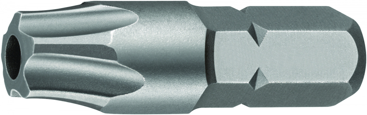 BIT s 5 - cípou hvězdou s vrtáním v pohonném konci, pro šrouby s vnitřní 5-cípou hvězdou, s čapem.