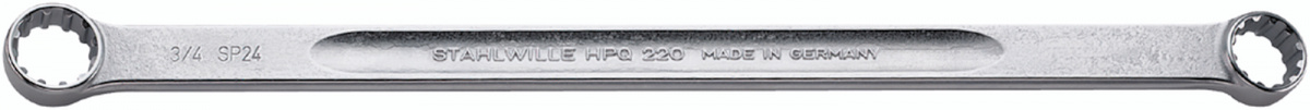 Dvoustranný očkový klíč extrémně dlouhý, Spline-Drive-Profil uchopení, ohnutý do úhlu 15°, MS-33787, MIL-W-8982, HPQ®-Ocel vysoké kvality, pochromovaná.