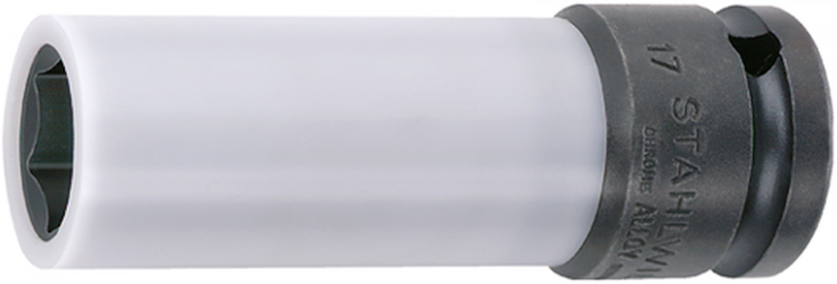 Nástavec pro matice kol 1/2" [a pohon, s pouzdrem z umělé hmoty. Vysouvací pouzdro z umělé hmoty chrání citlivá místa, matice a rouby kol z lehkého kovu
