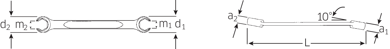 Otevřený dvoustranný očkový klíč, ohnutý, OPEN-RING se estihranem, DIN 3118/ISO 3318 (metrické rozměry), chromem legovaná ocel, pochromovaná.