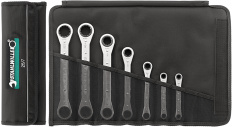 Sada ráčnových očkových klíčů, v rolovacím pouzdru Rolovací pouzdro se suchým zipem z extrémně odolného textilního materiálu
