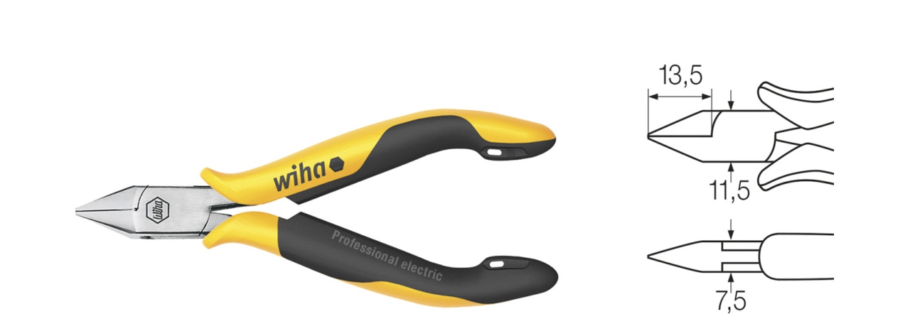 Wiha Kleště štípací stranové Professional ESD široká, špičatá hlava a drátová přidržovací pružina s malým břitem 115 mm, 4 1/2" (26822)