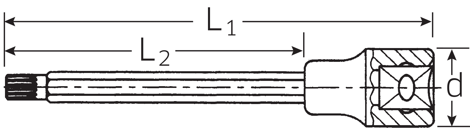 roubovací nástavec pro rouby s vnitřním ozubením (XZN®), DIN 2324, extra délka, chromem legovaná, chromovaná.