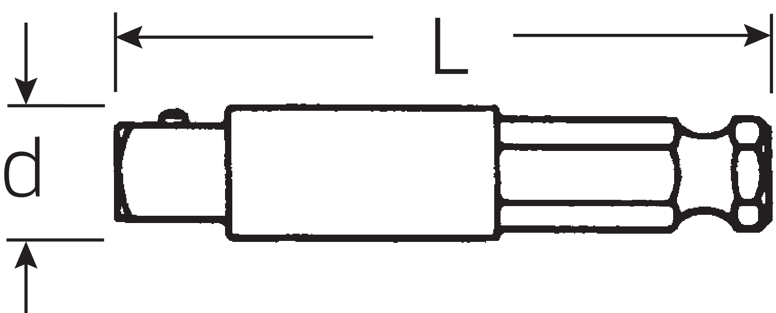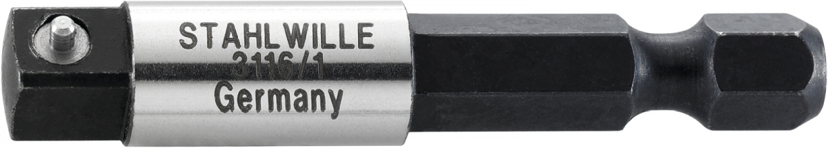 Strojně ovládaný propojovací díl DIN 7428/ISO 3317, pohon s vnějším šestihranem, pro strojně ovládané IMPACT- hlavice nástrčných klíčů DIN 3129/ISO 2725-2 s vnitřním čtyřhranem DIN 3121/ISO 1174-2, se zesílneným spojovacím průřezem pro vylepšené zařízení IMPACT- hlavic (3216/1, 3316/1), čtyřhran s pružinovou západkou, chromem legovaná ocel, černěná.