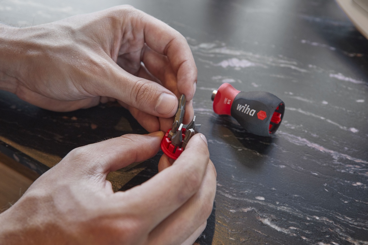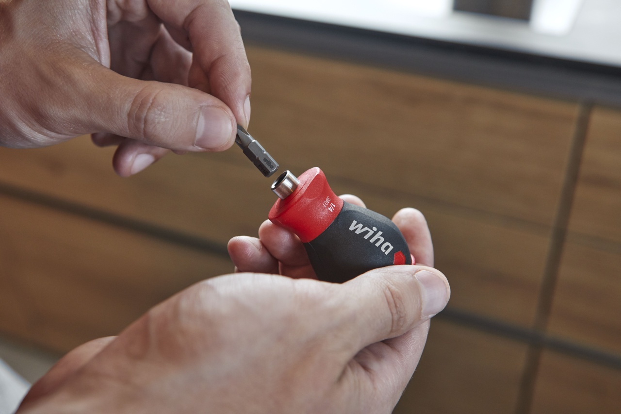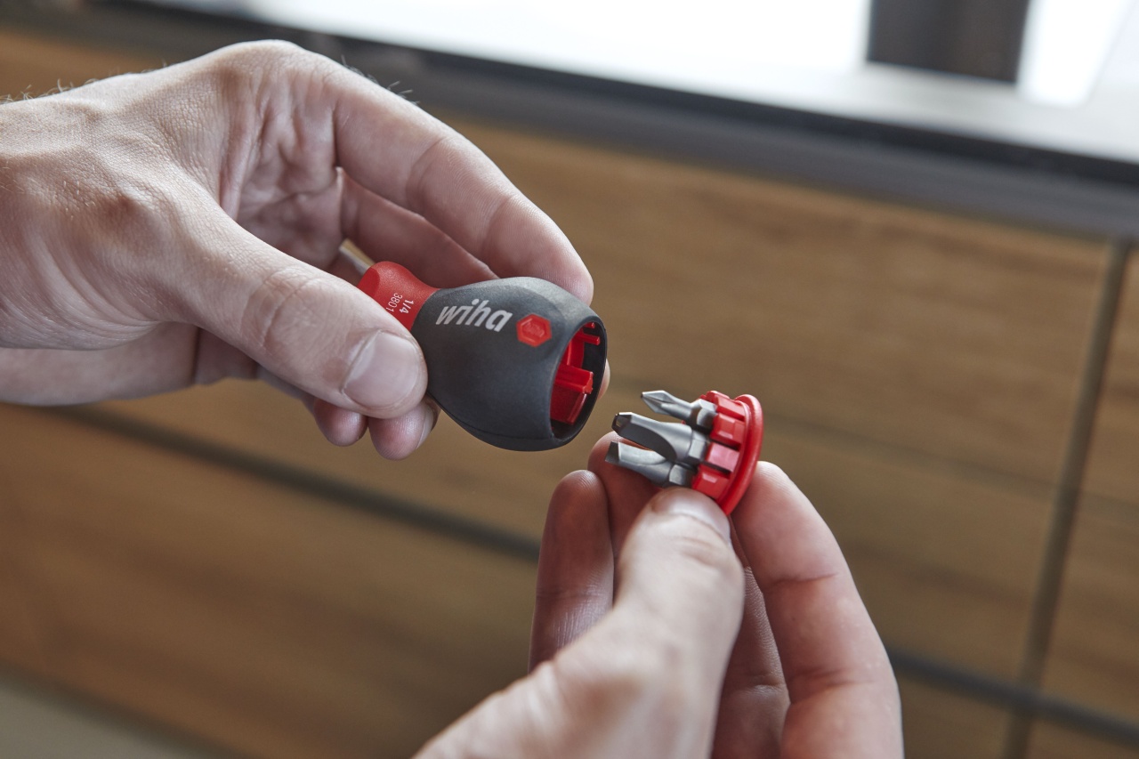 Zásobníkový držák nástavců Stubby má v rukojeti nástavce. Odstraníte-li krytku na konci rukojeti z několika druhů plastů SoftFinish, tak vyjde na světlo šest nástavců o délce 25 mm, které jsou dimenzovány pro všechna běžná šroubování. Tím lze flexibilně používat zásobníkový držák nástavců a zejména při mobilním nasazení představuje atraktivní alternativu k sadě šroubováků. Díky magnetické upínací funkci integrovaného držáku nástavců je zajištěna jednoduchá manipulace i optimální uchycení. Šikovná a kompaktní velikost dělá ze zásobníku nástavců Stubby specialistu pro práce ve velmi úzkém prostoru.