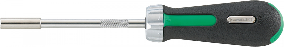Ráčna na bity. Jednoduchá změna směru (doleva, doprava, fixováno) krátkým otočením přepínacího kroužku. Ergonomicky tvarovaná dvousložková protiskluzová rukojeť pro optimální přenos síly. Na konci rukojeti přihrádka pro úschovu 6 bitů; otevírá se stiskem knoflíku (vel. 1). Pro bity do šroubováku ("BITS") s vnějším šestihranem 1/4" DIN 3126/ISO 1173, tvar C 6,3. Nástavce do 1/4" zástrčkového klíče lze používat ve spojení se spojovacím dílem č. 3115/1 (vněšjí šestihran a vnější čtyřhran 1/4"). Jednoduchá výměna bitů pomocí vnitřního šestihranu s magnetem. Rýhovaná část pro rychlý chod pro rychlé předepínání šroubů. Vysoce namáhatelný mechanismus se 48 zuby (pracovní úhel 7,5°).