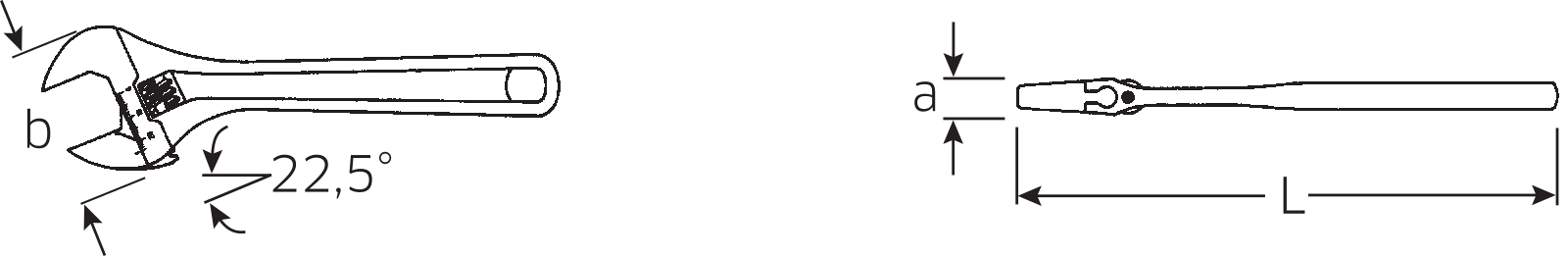 · right-handed · DIN 3117/ISO 6787 (B shape) · ASME B107.100 · jaw offset 22.5° · Chrome Vanadium, chrome plated