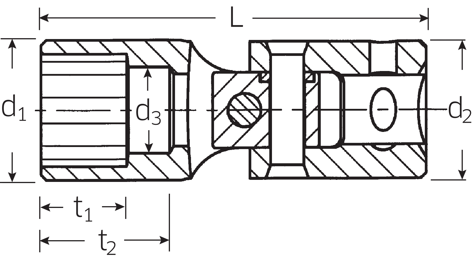 Kloubová nástrčná hlavice americká: SAE AS 954-E, ASME B 107.1, HPQ®- ocel vysoké kvality, chromovaná.