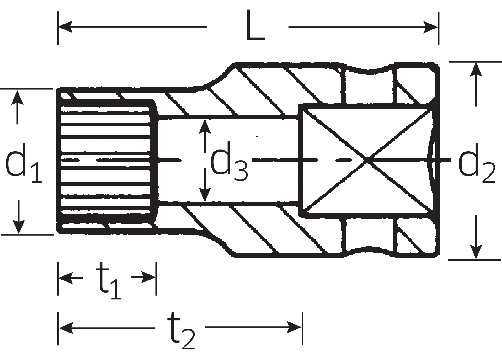 Nástrčná hlavice Spline-Drive MS-33787, MIL-W-8982, HPQ®-Ocel vysoké kvality, chromovaná.