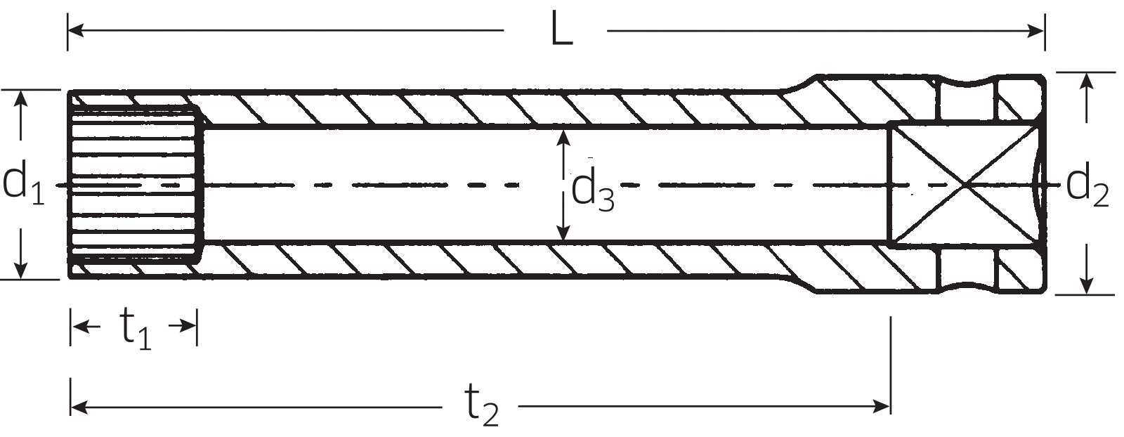 Nástrčná hlavice Spline-Drive prodlouený, s hlubokým vrtáním, MS-33787, MIL-W-8982, HPQ®-Ocel vysoké kvality, chromovaná.