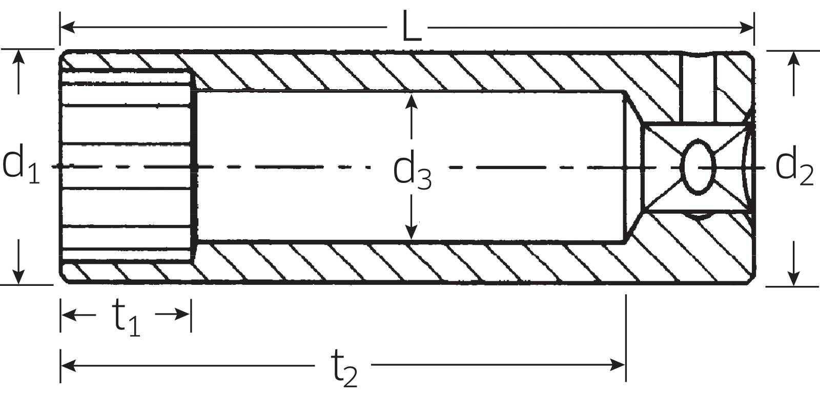 Nástrčná hlavice prodlouená, metrická: E DIN EN 3710, E DIN EN 3709, DIN 3124/ ISO 2725-1, ASME B 107.5M, americká: ASME B 107.1, Fed. Spec. GGG-W-641, SAE AS 954-E, HPQ®-ocel vysoké kvality, chromovaná.