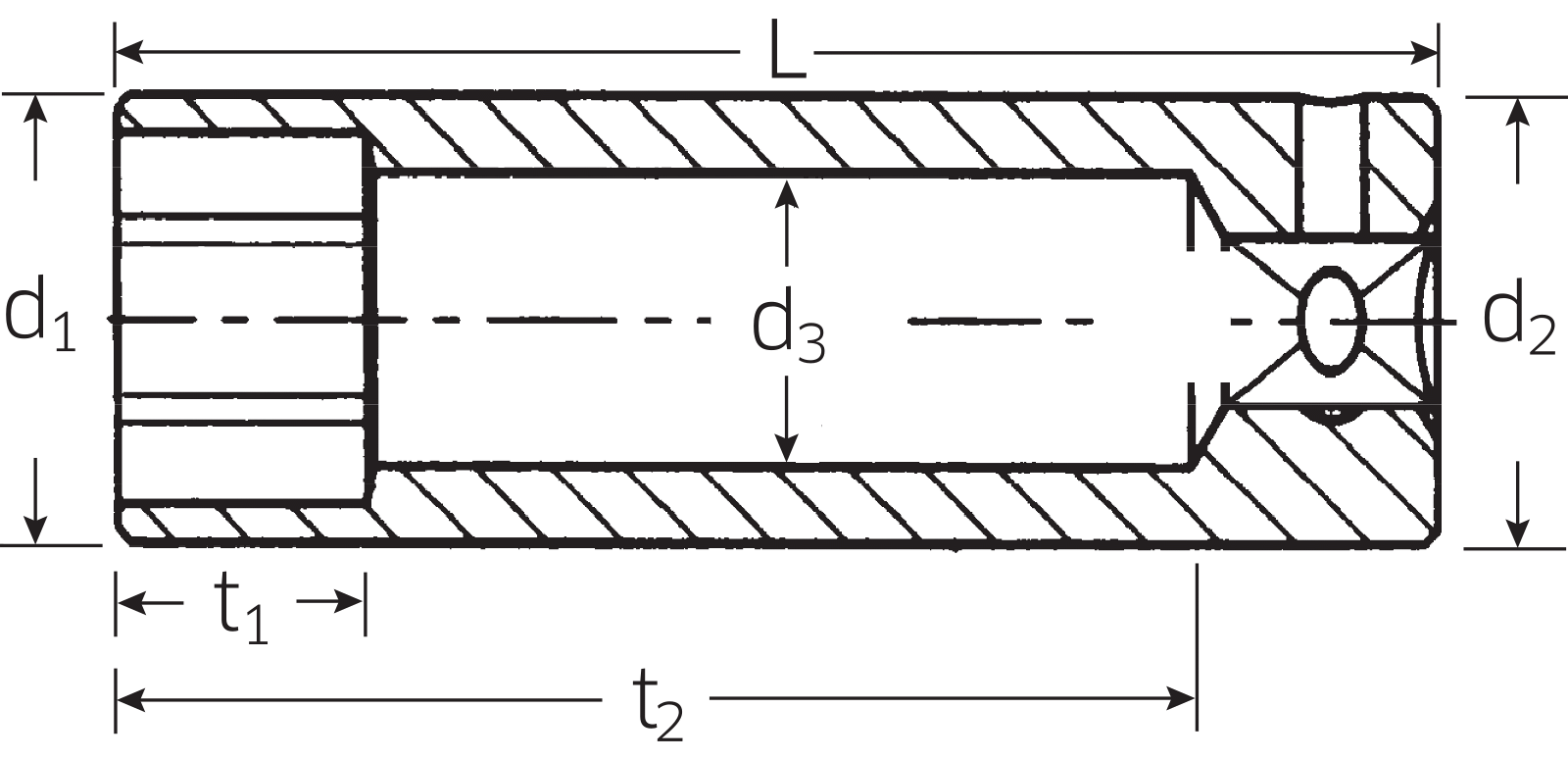 Nástrčná hlavice prodlouená, DIN 3124/ISO 2725-1, ASME B 107.5M, E DIN EN 3710, E DIN EN 3709 (zkuební hodnoty), HPQ®-ocel vysoké kvality, chromovaná.
