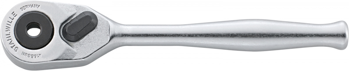Bit ratchet, fine tooth reversible, 80 teeth, with steel handle and inside hexagon, 1/4", DIN 3126/ISO 1173 D 6.3 for Bits Screwdriver sockets 1/4". Internal hex drive with a collar-thrust spring. Bits are easy to insert, lock securely in position and can be removed just as easily; even hex bits with a wide groove (Type E, DIN 3126/ISO 1173), for use in confined spaces, re-engages after movement of 4.5°, construction without screws prevents foreign object damage.