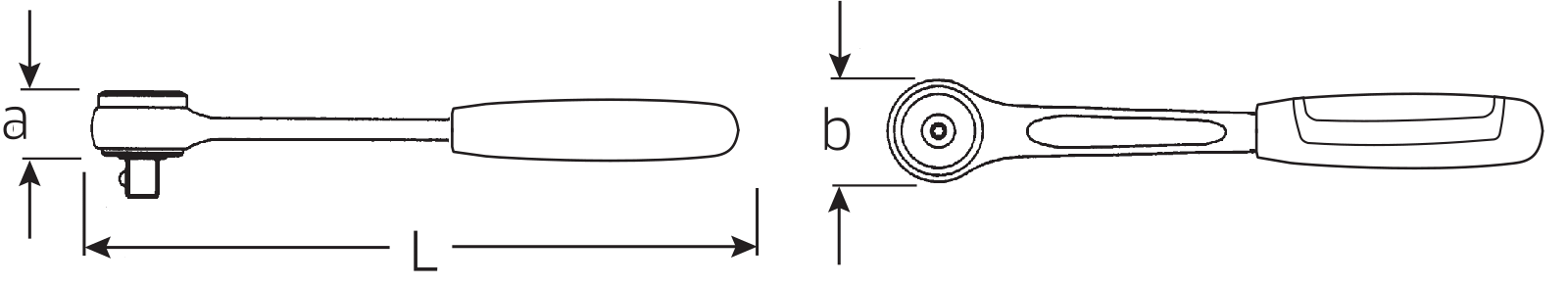 Ráčna přepínatelná, 30 zubů, s dvoukomponentní rukojetí, DIN 3122/ISO 3315.
