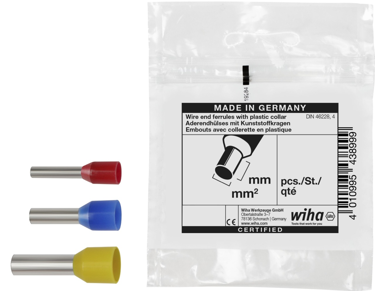 Wiha Dutinky vodičů s plastovým límcem, sada 100 St., barevný kód DIN 6 mm² (43932)