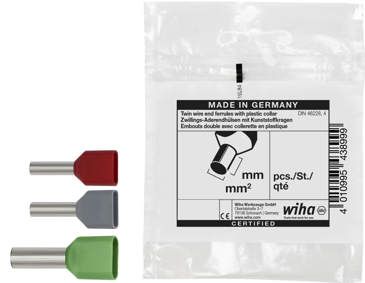 Právě u připojení jemných vodičů ve svorkách musí elektrikáři dbát, aby nebyly jednotlivé vodiče rozmačkány nebo špatně zasunuty. V opačném případě hrozí přetržení kabelů nebo dokonce i zkraty, které v neposlední řadě představují potenciální příčinu požáru. Dutinky vodičů tomu mohou zabránit a zajistit bezpečnost kontaktů, a tím i dlouhodobou provozní bezpečnost. Kónický límec během instalace usnadní zavedení vodiče do objímky. Pomocí objímky se také zjednoduší zavedení kabelu do svorky. Bezhalogenové dutinky vodičů od Wiha jsou tepelně odolné až do 105 °C. Vyrábějí se podle DIN 46228, ale s francouzským barevným kódem (kód 1).
