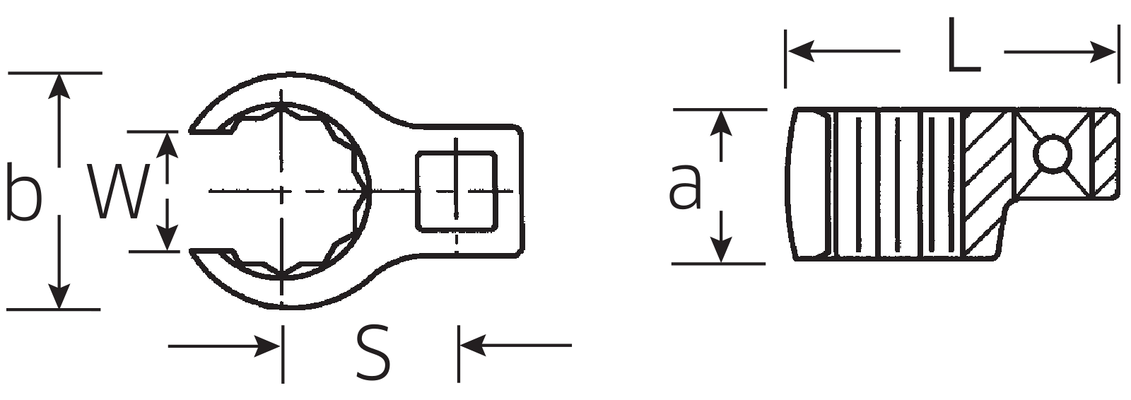 očkoplochý Očkoplochý klíč CROW-FOOT 9mm vnitřní čtyřhran 1/4" 28,5mm