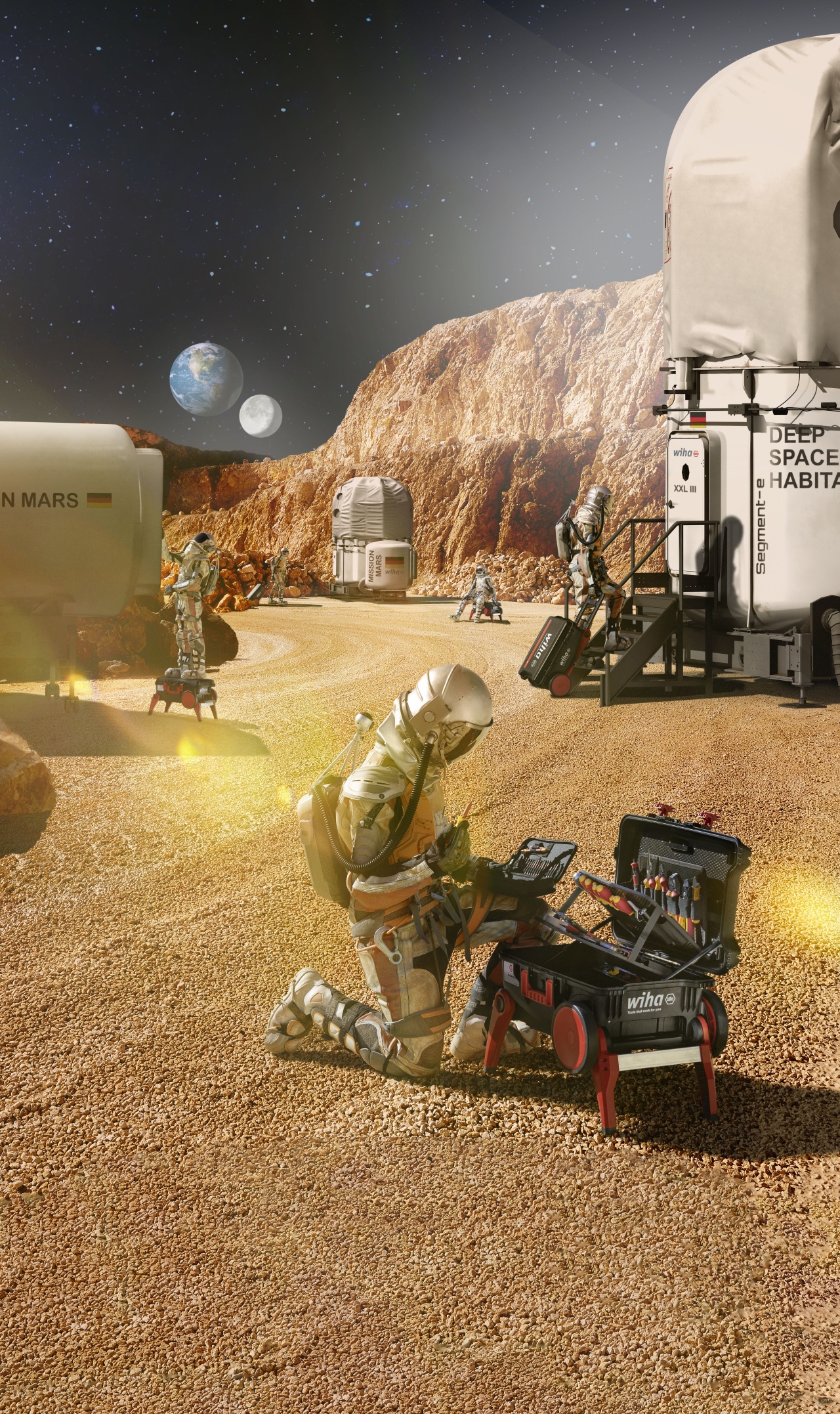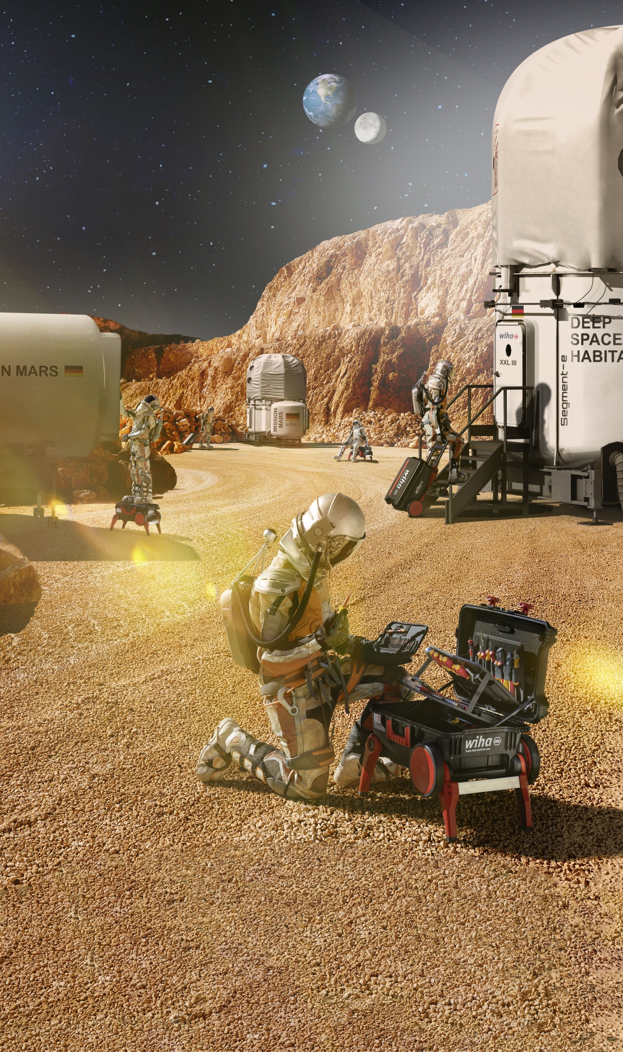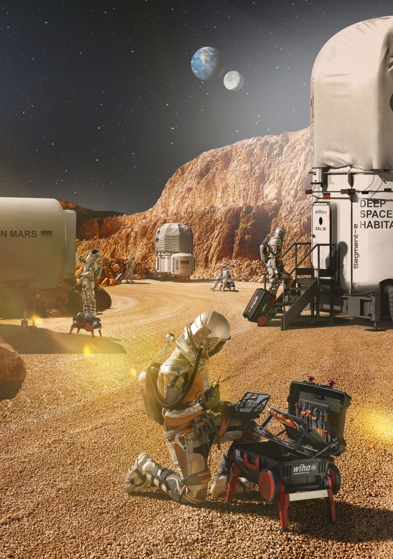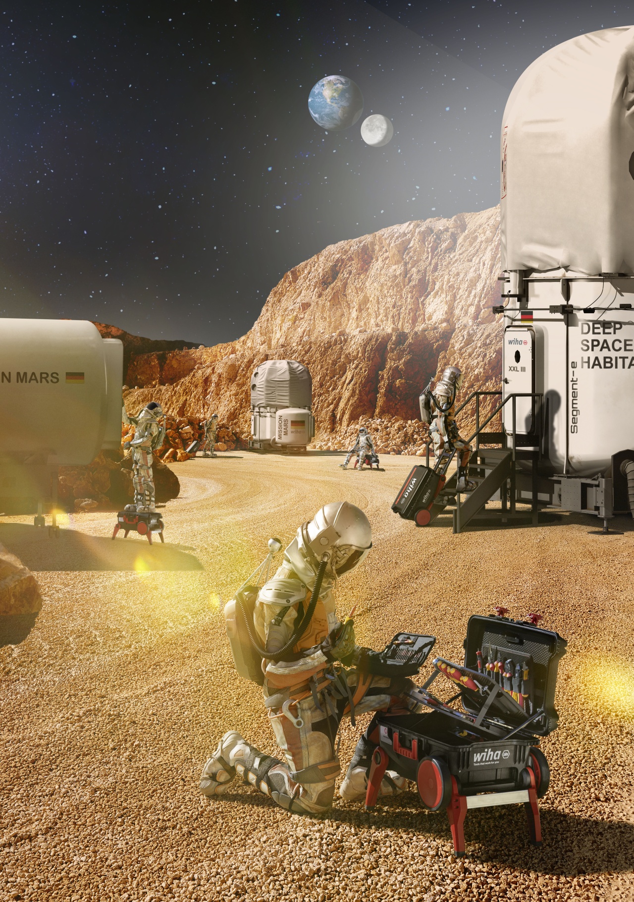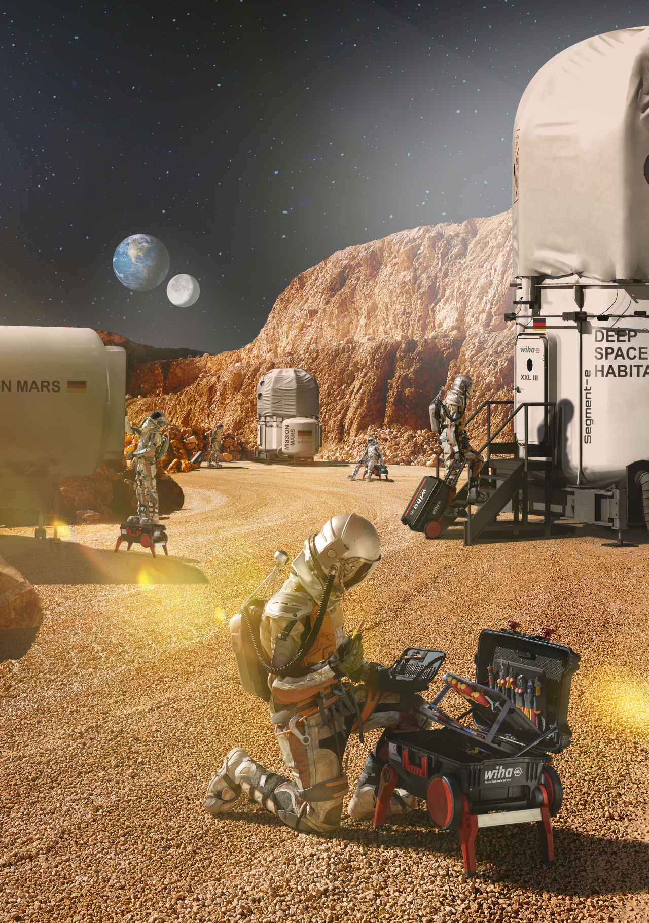 Usnadní vám práci.: S vysunutými podstavci slouží kufřík jako stabilní opora při pracích ve výškách.