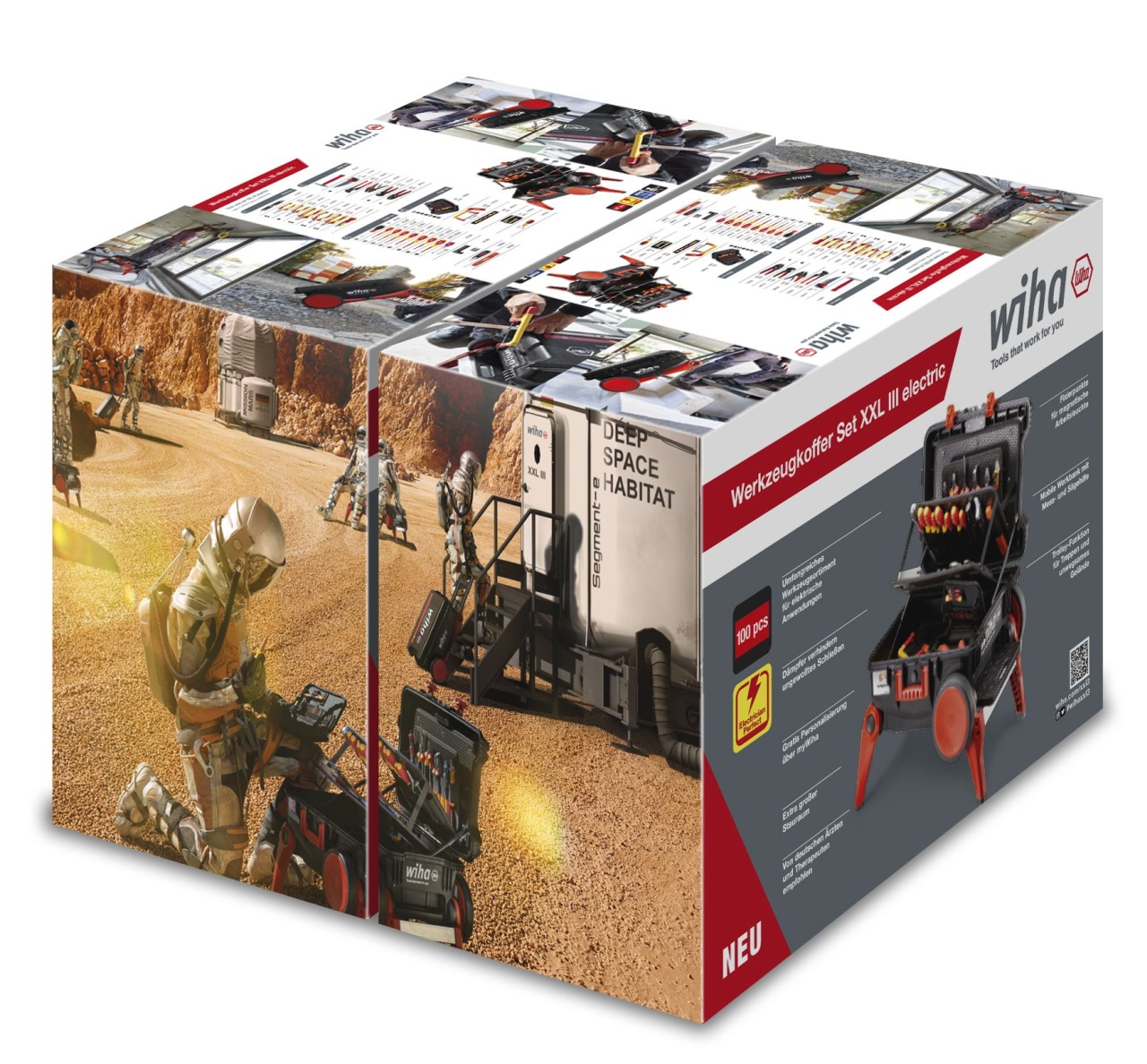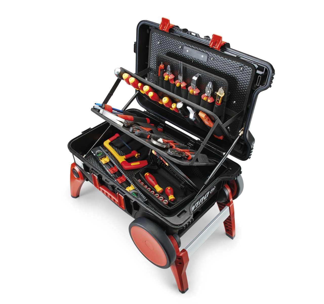Elektromechanici potřebují nejrůznější nářadí na nejrozmanitějších místech. Jen málo kufrů na nářadí nabízí dostatečnou stabilitu a udržet pořádek ve veškerém potřebném nářadí často bývá nadlidský úkol. Kufr na nářadí Wiha XXL III electric je dokonalý opak – obsahuje rozsáhlý sortiment nástrojů, dostatek úložného prostoru a naprostou robustnost. Díky mimořádně velkým kolům je tažení kufru po neschůdném terénu nebo schodech naprostá hračka. Výklopné nohy zajistí, že vám kufr zároveň poslouží jako protiskluzový stupínek. Vyvýšená poloha navíc snižuje namáhání zad a zvyšuje pohodlí při vyjímání nářadí. Vroubení ve tvaru V se stupnicí ve víku kufru usnadňuje řezání například kabelových kanálů na stavbě. Díky rozsáhlé výbavě kufru XXL III electric máte vždy po ruce vhodné nářadí pro každý způsob použití. Ergonomické šroubováky, inovativní kleště, mobilní šroubovák a sada nástavců slimVario® pro rychlé servisní zásahy a mnoho dalších nástrojů vám znatelně usnadní každodenní práci. Plně izolované nářadí zároveň uživatele chrání při práci na dílech pod napětím. Ergonomická koncepce ručního nářadí Wiha také výrazně šetří svaly a šlachy, a to zejména při dlouhotrvající práci. Kufr vyrobený z odolného polypropylenu je vybaven plynovými tlumiči, které drží víko v různých polohách a zamezují zhmoždění prstů v důsledku jeho nechtěného zavření.