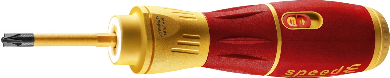 Několik šroubových spojení za den, stovky šroubových spojení za týden. Jako řemeslník investuje člověk neustále spoustu času a energie do opakovaných šroubovacích prací. Tělu nelze zazlívat bolesti zápěstí, které jsou následkem takové činnosti. Díky elektrickému pohonu šroubováku speedE® II jsou klouby a šlachy trvale chráněny. Kromě toho dochází k trojnásobné minimalizaci časové náročnosti. Jako další zajímavost nabízí šroubovák speedE® integrovanou funkci ochrany materiálu. U citlivějších šroubových spojení, jako jsou například plastové kryty zásuvek, nesmí dojít k přetažení, jinak by se mohl materiál poškodit. V tomto případě se šroubovák speedE® automaticky vypne při momentu 0,4 Nm a přenechá uživateli úplnou kontrolu, aby provedl dotažení jemně rukou. Pokud Vás čekají šroubovací úlohy, které vyžadují větší sílu, nabízí šroubovák speedE® druhé generace možnost zvýšit posuvným spínačem elektrickou sílu na 1,0 Nm. Barva nástavců slimBit přitom slouží jako pomůcka, aby bylo možné nastavit správný stupeň síly podle příslušného účelu použití. Červené nástavce slimBit s menšími profily se používají v červené poloze posuvného spínače, žluté nástavce Power slimBit s většími profily naznačují, že se s nimi pracuje v silnější, žluté poloze posuvného spínače. Pokud požadujete větší sílu, lze se šroubovákem speedE® II dosáhnout ručně momentu až 12 Nm, aniž by došlo k jeho poškození. Během elektrického šroubování zajišťuje zabudovaná LED lampa trvale světlo pro optimální výhled na šroub. Díky tomu lze výkonnou LED lampu používat v nedostatečně osvětleném prostředí pomocí kruhového spínače jako kapesní svítilnu. Velký kruhový spínač a také bezproblémový rovnoměrný otáčivý chod zaručují ještě snadnější ovladatelnost. Díky kombinaci usnadnění práce a také ergonomickému tvaru rukojeti SoftFinish® doporučují elektrický šroubovák speedE® II němečtí lékaři a terapeuti sdružení AGR.