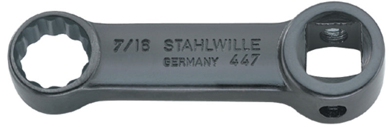 Prodloužený očkový klíč 7/16" s vitřním čtyřhranem 3/8" od firmy Stahwille je vyroben z vysoce kvalitní HPQ černěné oceli.