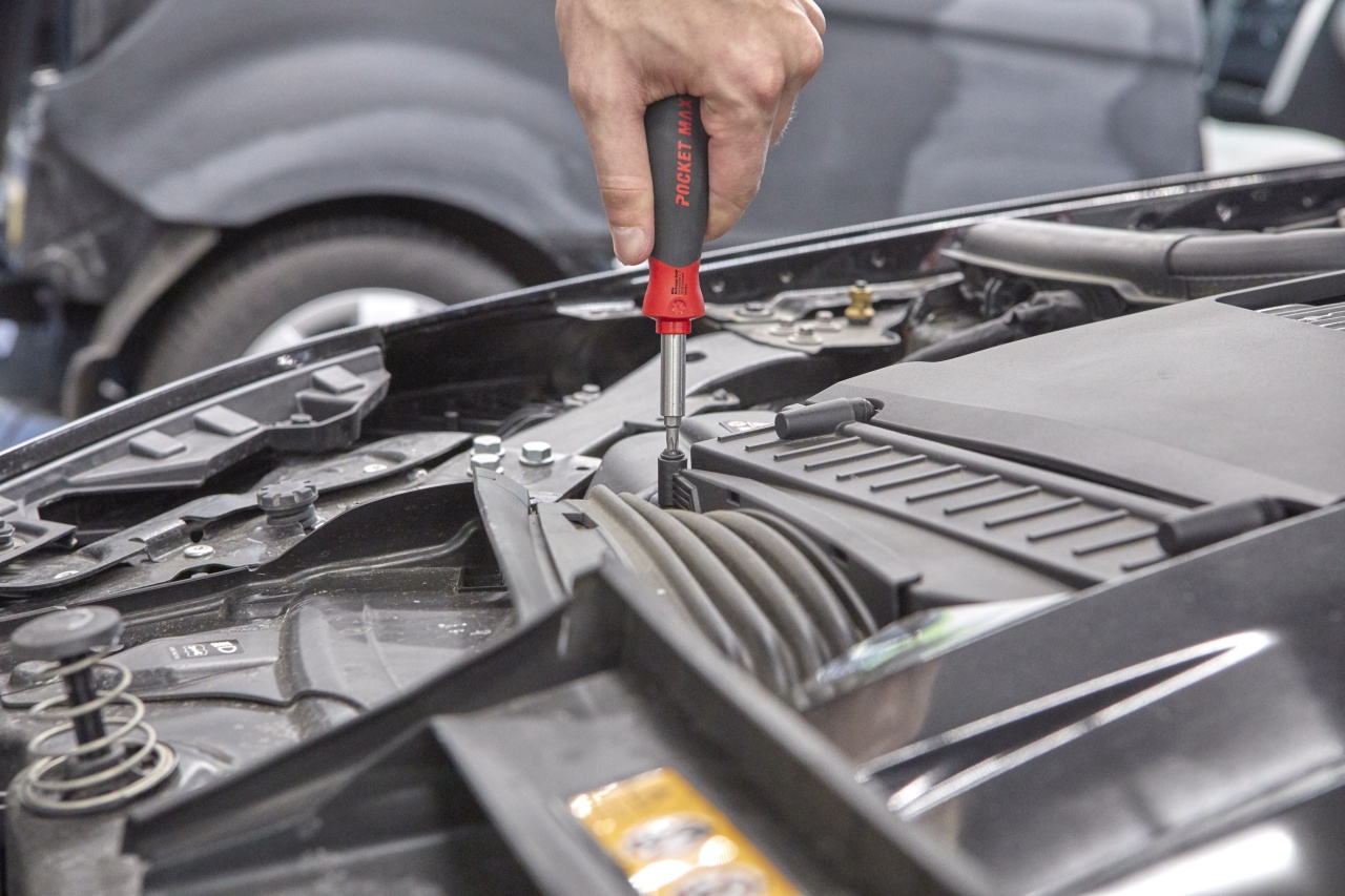 Víceúčelové nástroje nabízejí skvěle rozmanité funkce – jen kdyby často nebyly tak velké a těžké. Kompaktní a lehký Wiha PocketMax® se bez problémů vejde do každé kapsy u košile nebo kalhot a je ideálním průvodcem každého řemeslníka. Vložka s nástavci, bezpečně uložená v rukojeti, obsahuje osm standardních nástavců 1/4" C 6,3, které lze použít k ručnímu i strojovému šroubování. Díky magnetickému zavírání lze vložku s nástavci velmi snadno otevřít a vyndat potřebné nástavce.