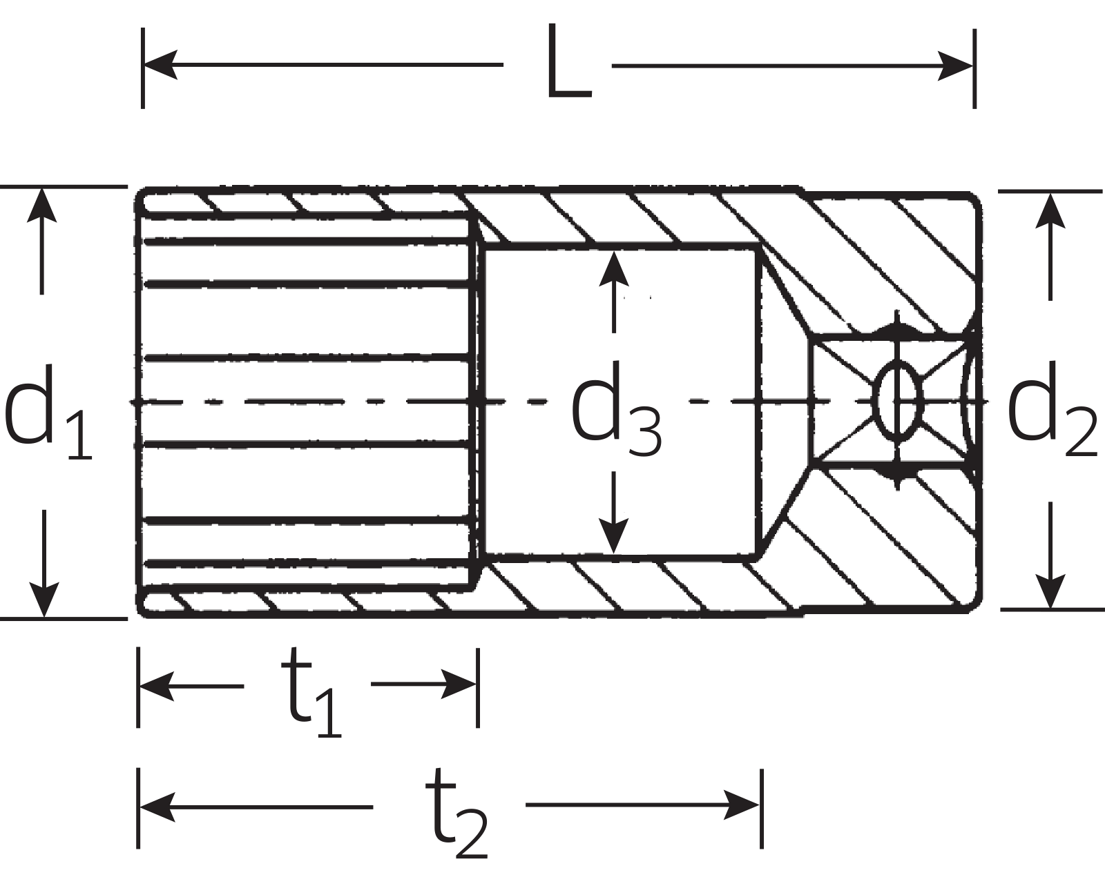 Nástrčná hlavice prodlouené, metrické: DIN 3124/ISO 2725-1, E DIN EN 3710, E DIN EN 3709, ASME B 107.5M; americké: ASME B 107.1, Fed. Spec. GGG-W-641, SAE AS 954-E, HPQ®-Ocel vysoké kvality, chromovaná