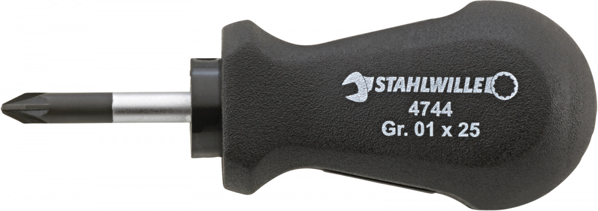 Kříový roubovák DRALL POZIDRIV/SUPADRIV®, DIN ISO 8764-1, -2, ISO 8764-1, -2, zkrácené provedení, chromem legovaná ocel, matně pochromovaná, černý hrot.