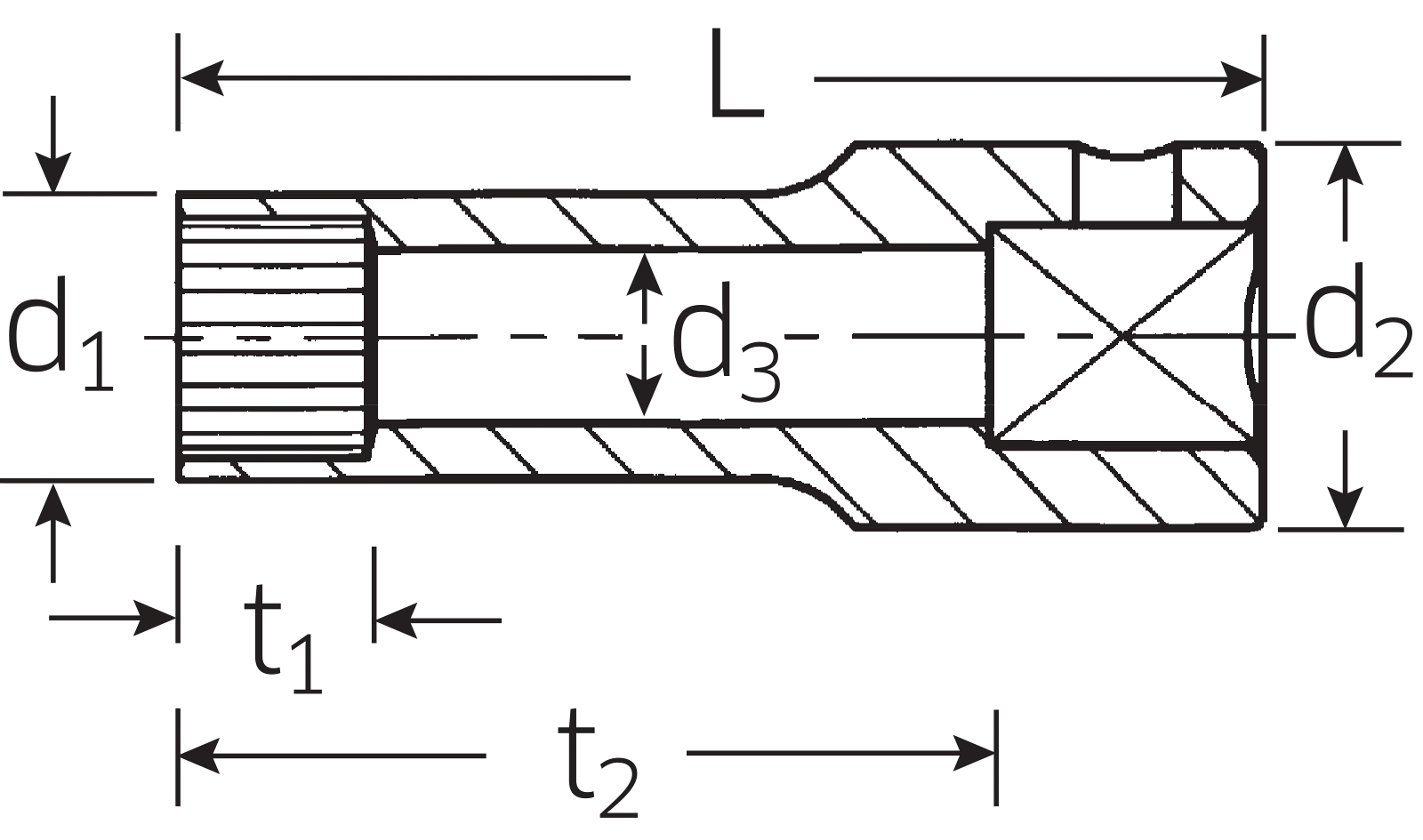 Nástrčná hlavice pro Spline-Drive prodlouená, hluboko vrtaná, MS-33787, HPQ®-Ocel vysoké kvality, černěná.