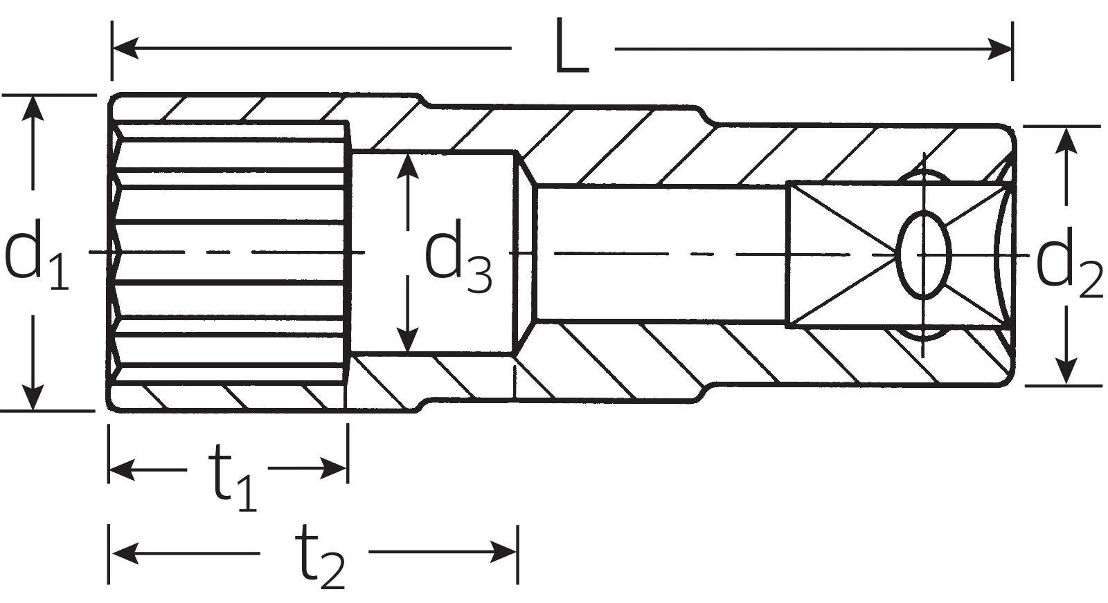 Nástrčná hlavice prodlouená, hluboko vrtaná, HPQ®-Ocel vysoké kvality, černěná. Pro brzdu A320/A321.