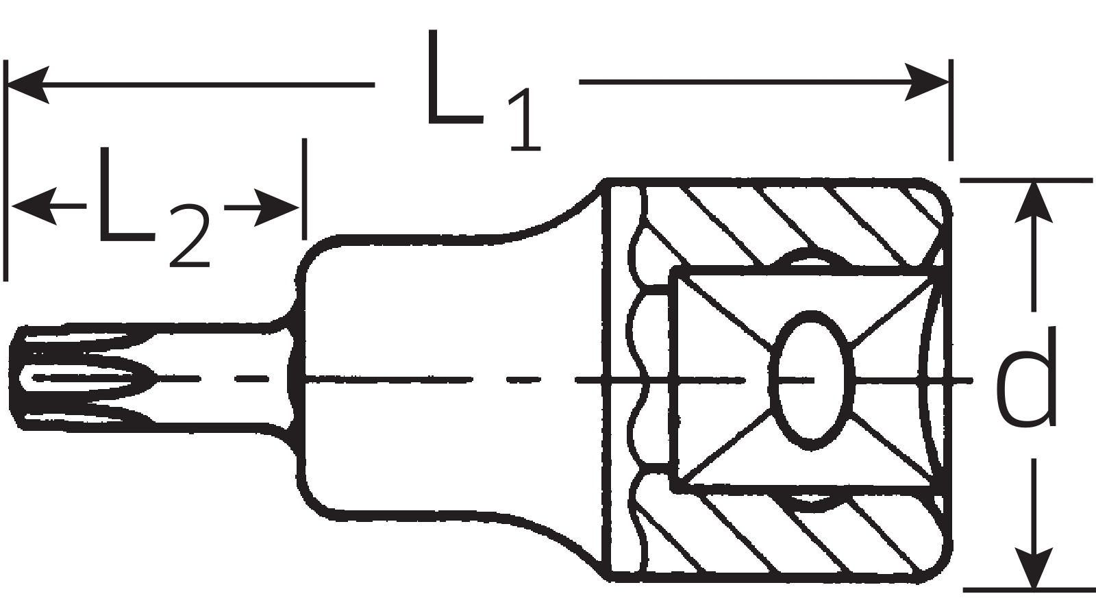roubovací nástavec pro rouby s vnitřním TORX®, s vrtem v náhonovém konci, chromem legovaná ocel, chromovaná (TORX® TAMPER RESISTANT)